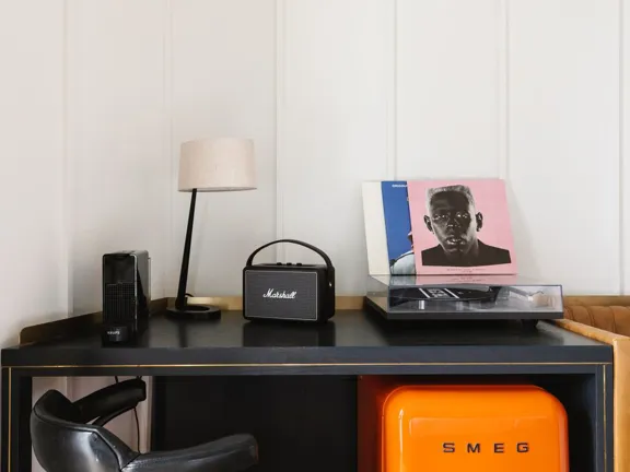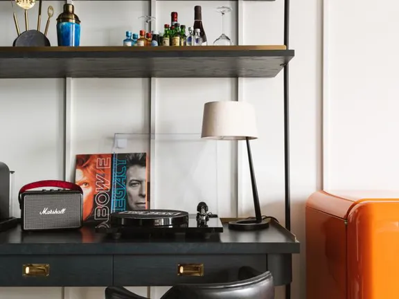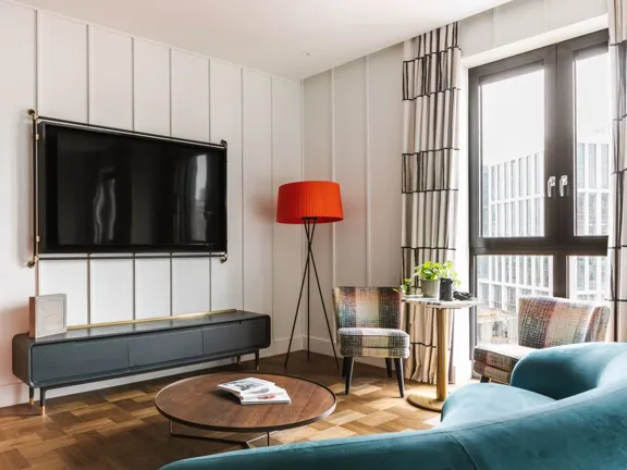 A sprawling 120-sqm suite with two bedrooms and two bathrooms with freestanding copper bathtub. After exploring the city, mix drinks at your private bar or challenge your friends to some foosball. Sleeps four.