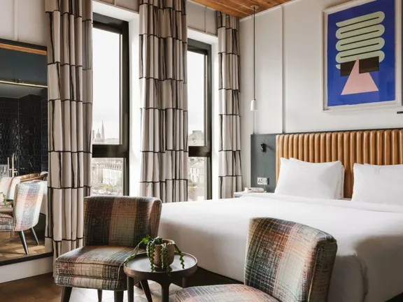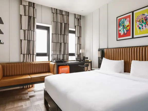 The city looks good from here. Our double room is perfect for duos who love a room with a view and space to loosen up. Your choice of double or twin beds. Sleeps two.