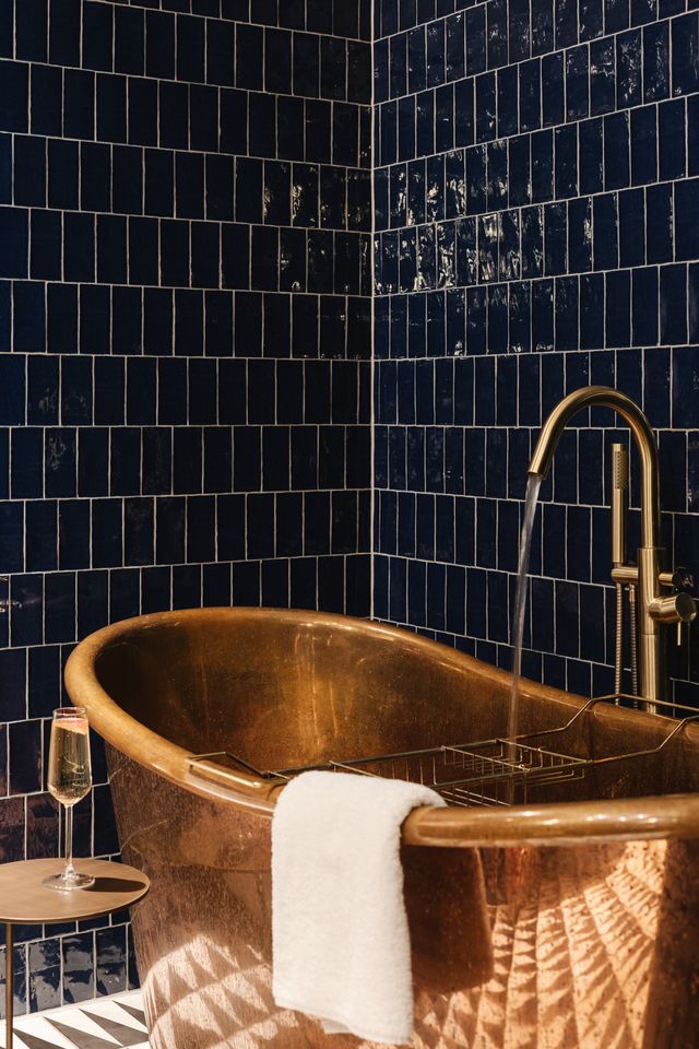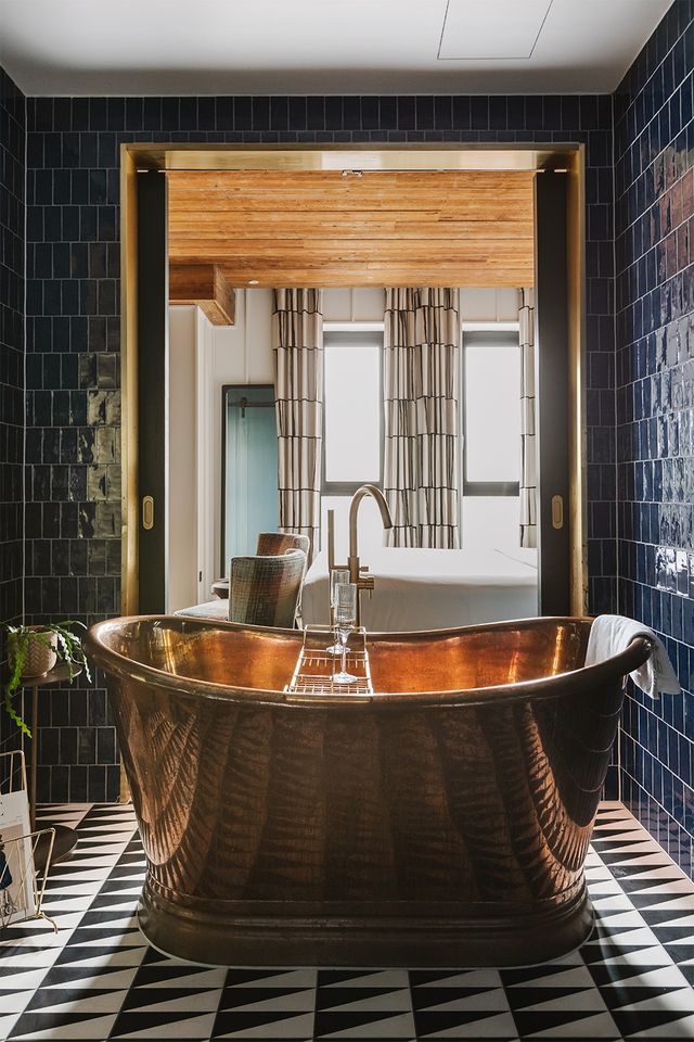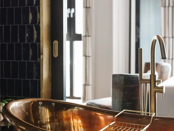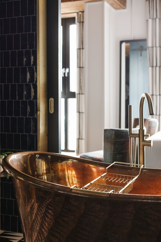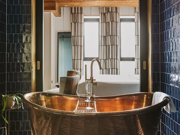 Copper, light, and space to relax. This suite pairs a statement copper bathtub with easy elegance—a sofa to sink into, views from both sides, and that unmistakable Dean charm. Sleeps two.