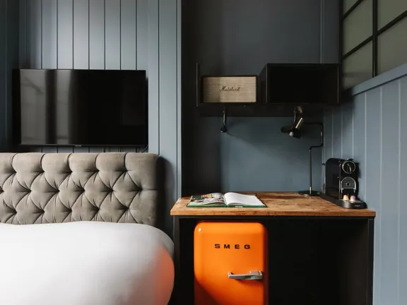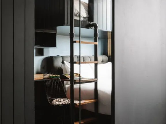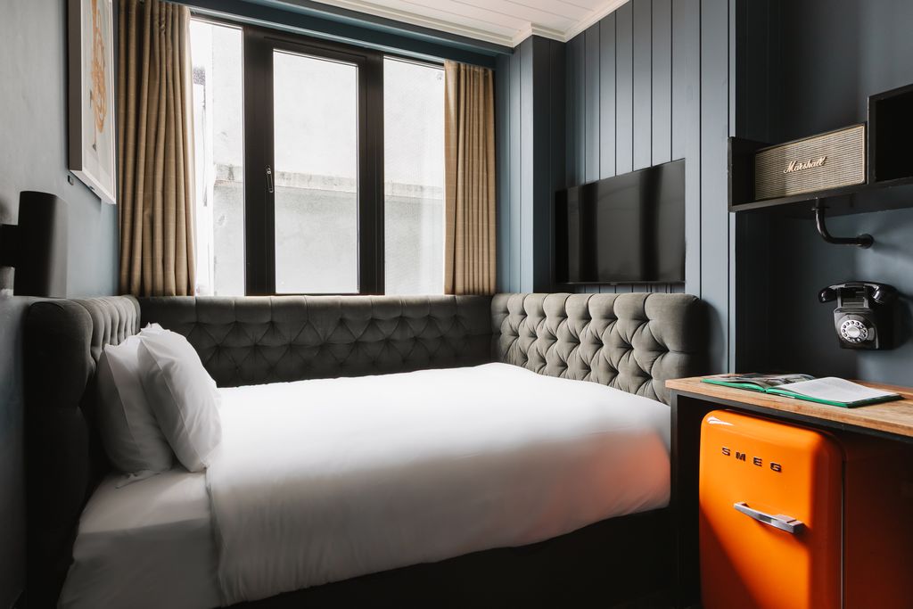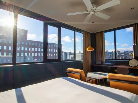 Get some breathing room. The Corner Large offers double or twin beds and dual-aspect windows framing the city. Spacious, sunlit and full of character. Sleeps two.