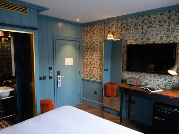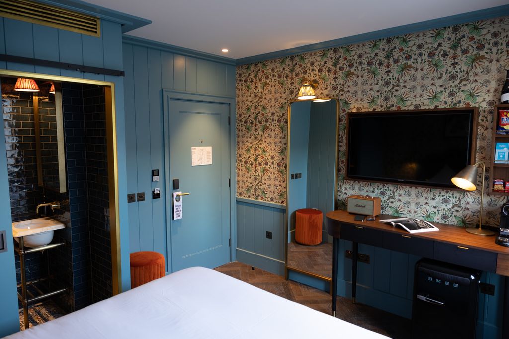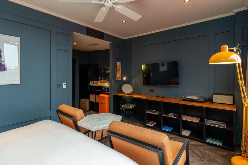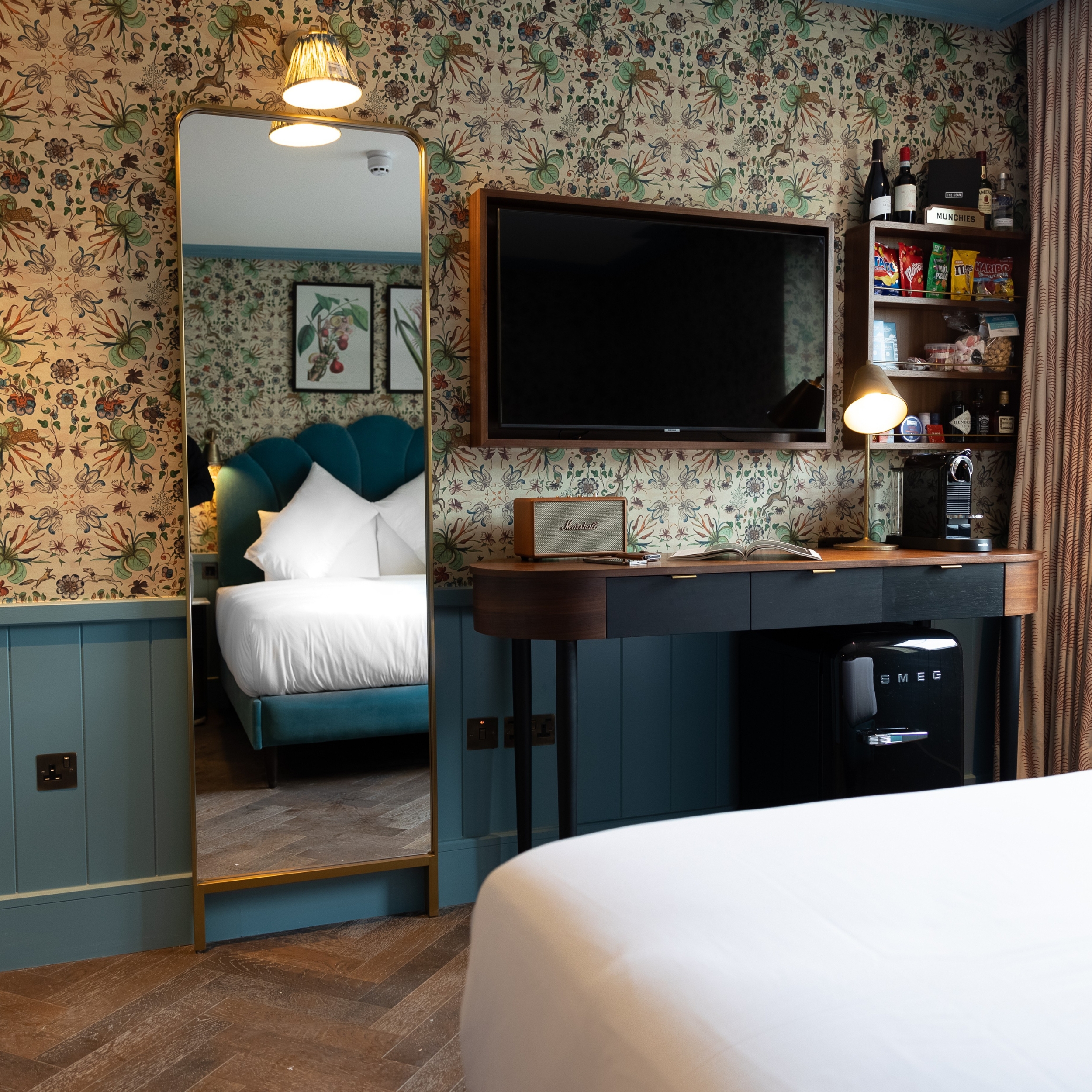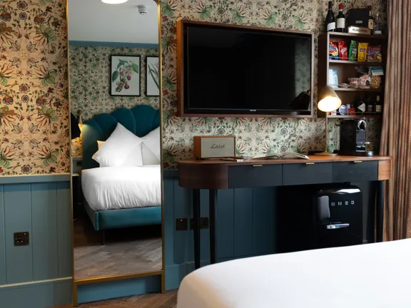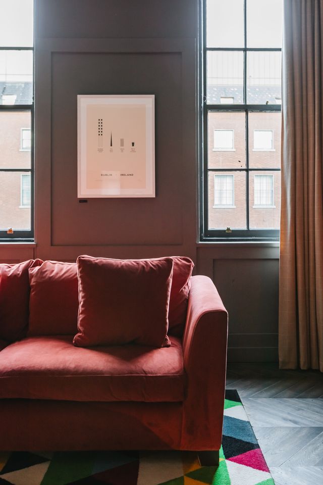 Designed to impress. A huge, soft double bed or two twin beds, a separate living room with a sofa bed, and a private balcony. Featuring a Martin guitar, Irish art, and a vintage drinks cabinet. Sleeps three.