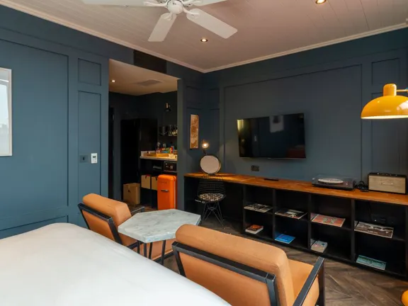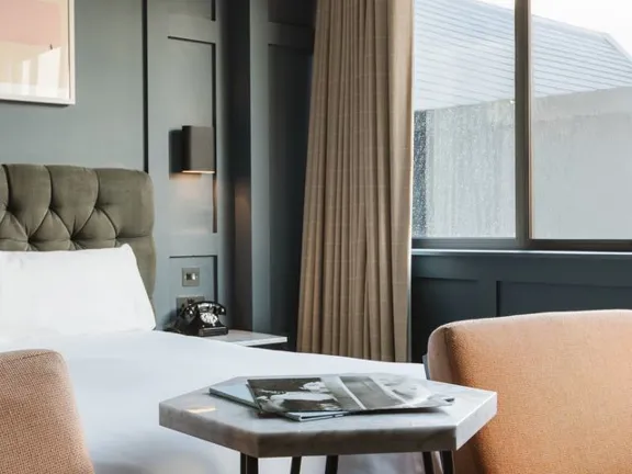 Less hotel suite, more Dublin city apartment. This 128-sqm loft-style penthouse packs in two bedrooms, two bathrooms, two balconies, and a kitchenette. Sleeps four.