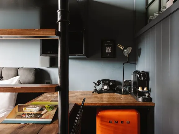 An intimate space to rest easy. Designed for solo stays or close company, with a double bed tucked neatly against the wall, a clever ensuite bathroom, smart storage, and thoughtful details throughout. Sleeps two.