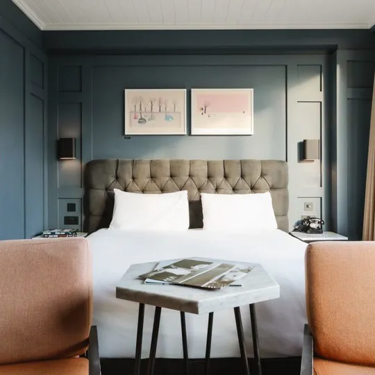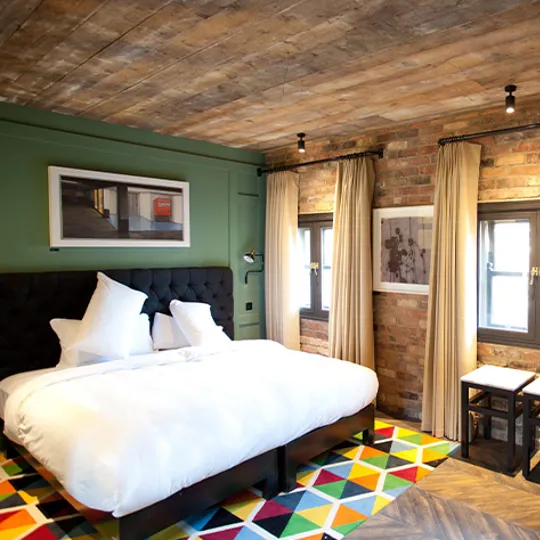Get some breathing room. The Corner Large offers double or twin beds and dual-aspect windows framing the city. Spacious, sunlit and full of character. Sleeps two.