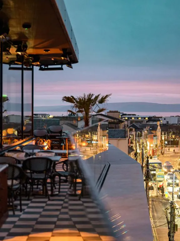 Soak in the views whilst you dine at Sophie’s Restaurant & Rooftop Bar in Galway. Wine and dine with amazing panoramic views of Galway City, whatever the weather.