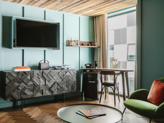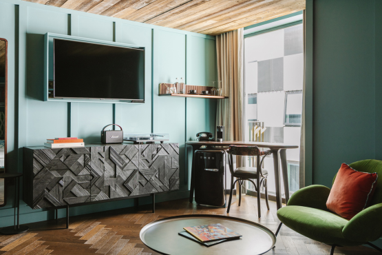 Whether it’s an overnight stay or a corporate event, the Penthouse is the perfect intimate space. Two bedrooms and The Loft can accommodate groups of up to 20 to 25 standing for break-out meetings, team building days, product launches, presentations, foosball tournaments or album playbacks. Bar stools. Irish sweet & savoury treats. Ligne Roset Ploum sofa. 70” Samsung Smart TV. Netflix. Eight seat poker table. Foosball table & so much more.