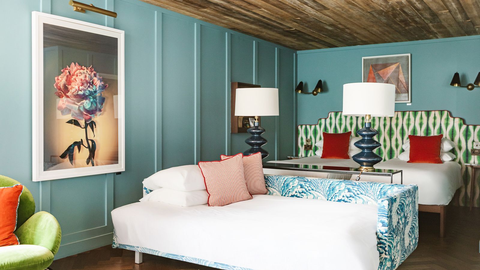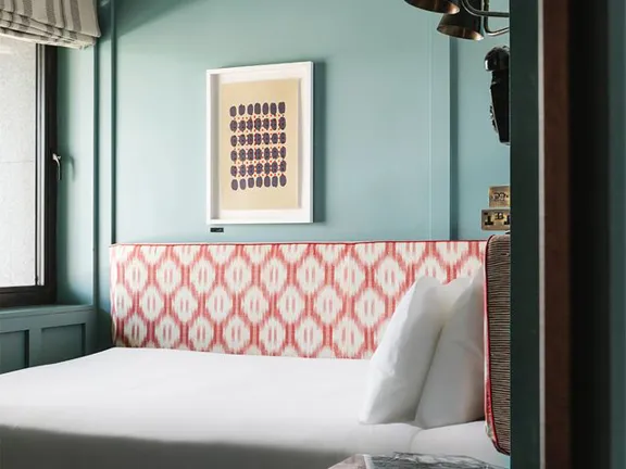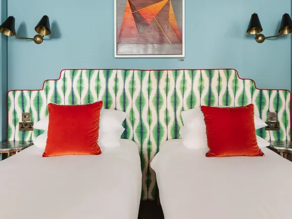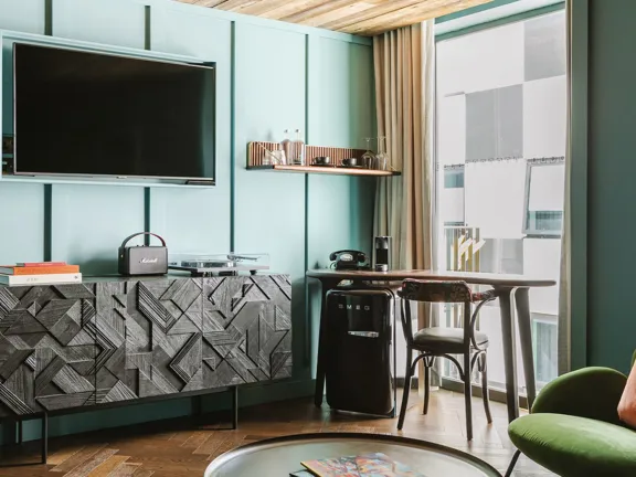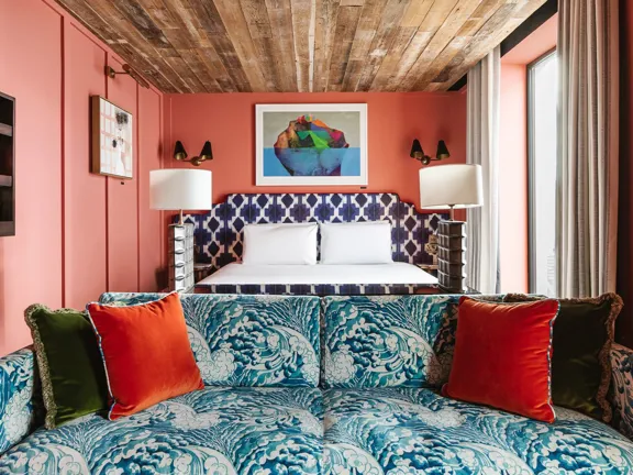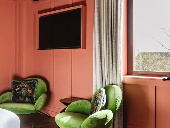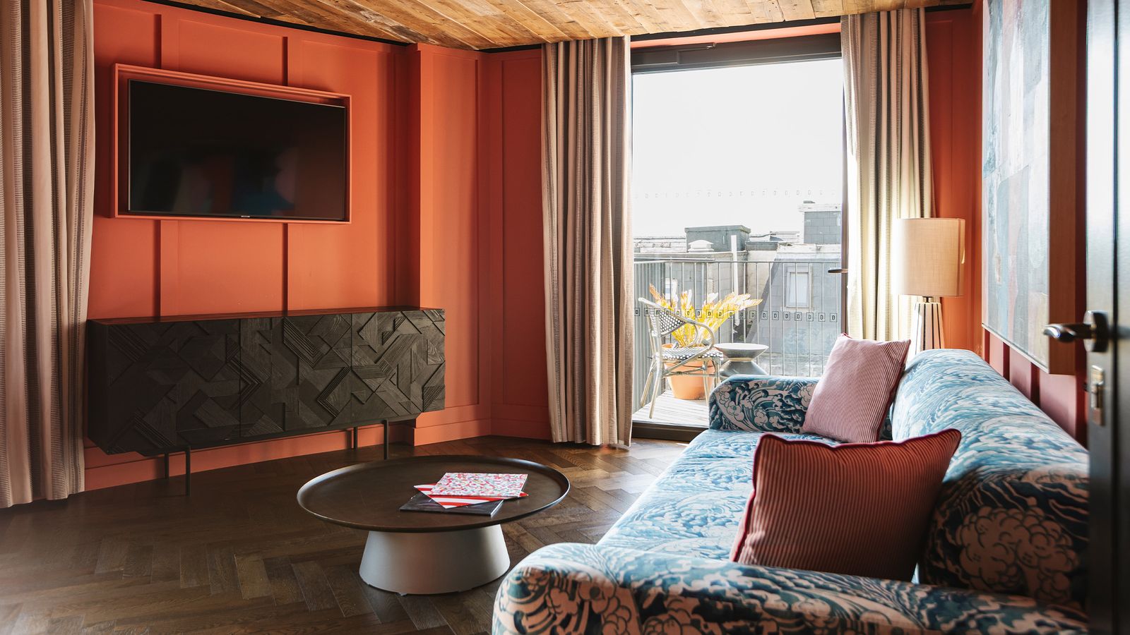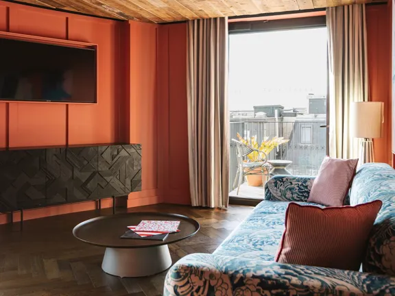 Designed to impress. A huge, soft double bed or two twin beds, a separate living room with a sofa bed, and a private balcony. Featuring a Martin guitar, Irish art, and a vintage drinks cabinet. Sleeps three.