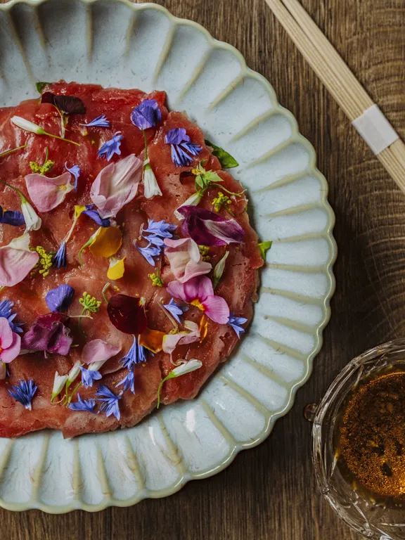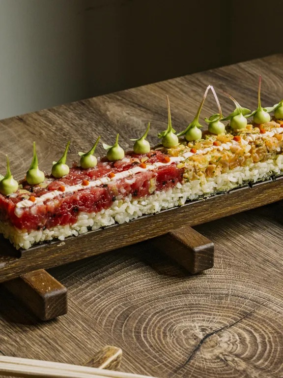 The Ibasho menu is all technical mastery and expressive presentation. Must-trys include Executive Chef Alex Craciun's signature pressed sushi, from yellowtail with avocado and truffle to wagyu with oscietra caviar, with premium cuts of sashimi. Over in the robata section, it's expertly grilled steaks and seafood, complemented by a curated caviar offering.