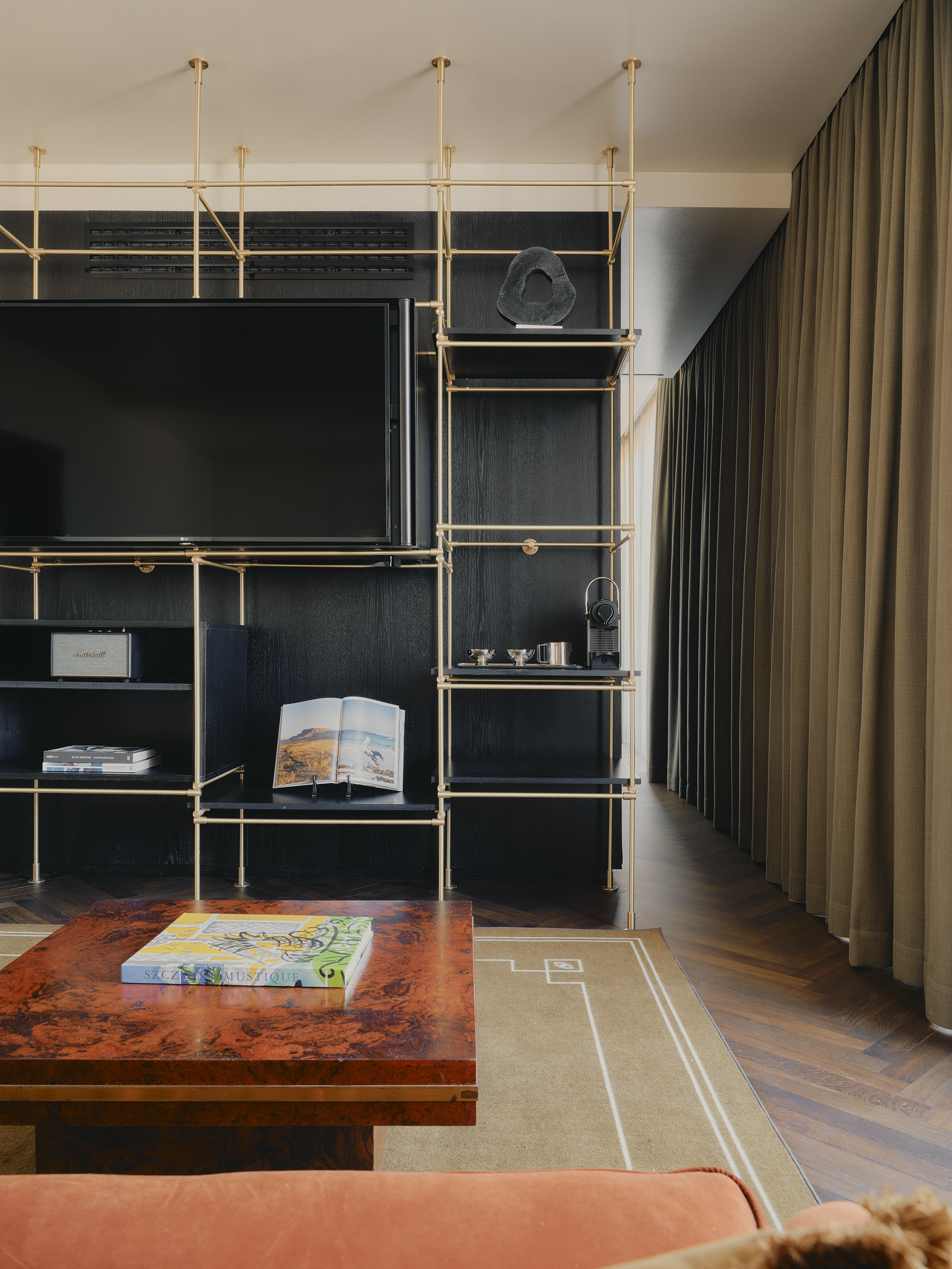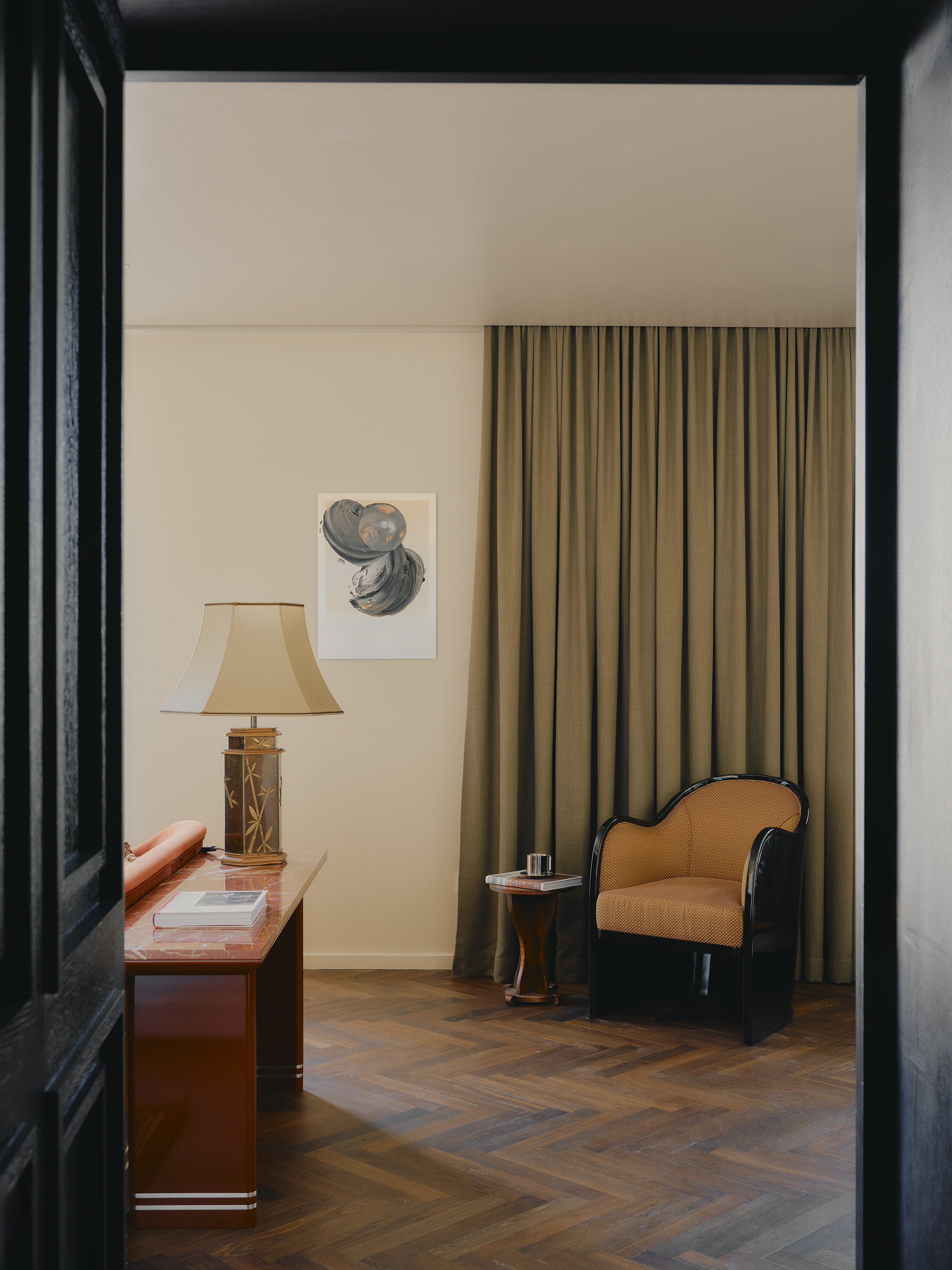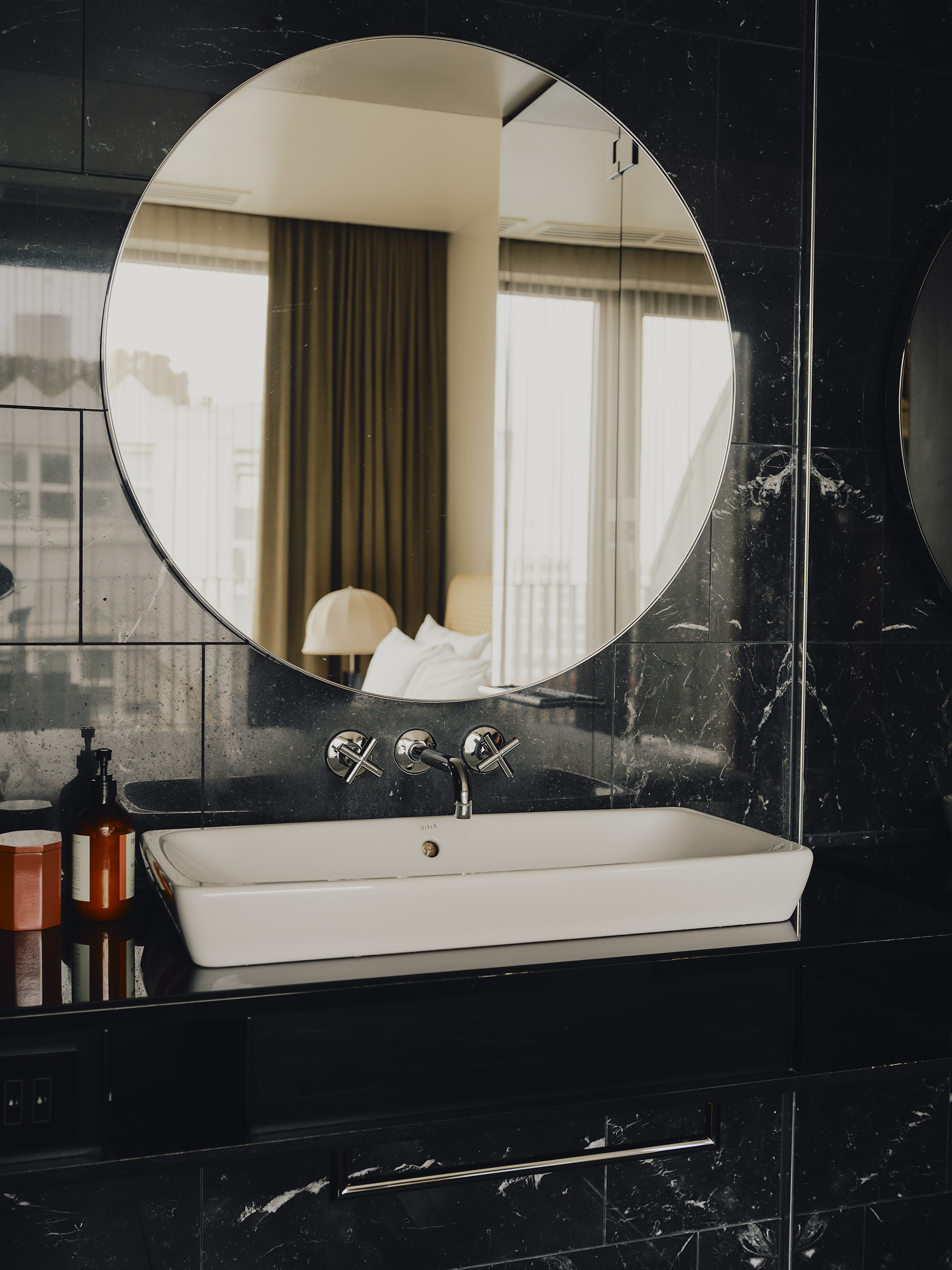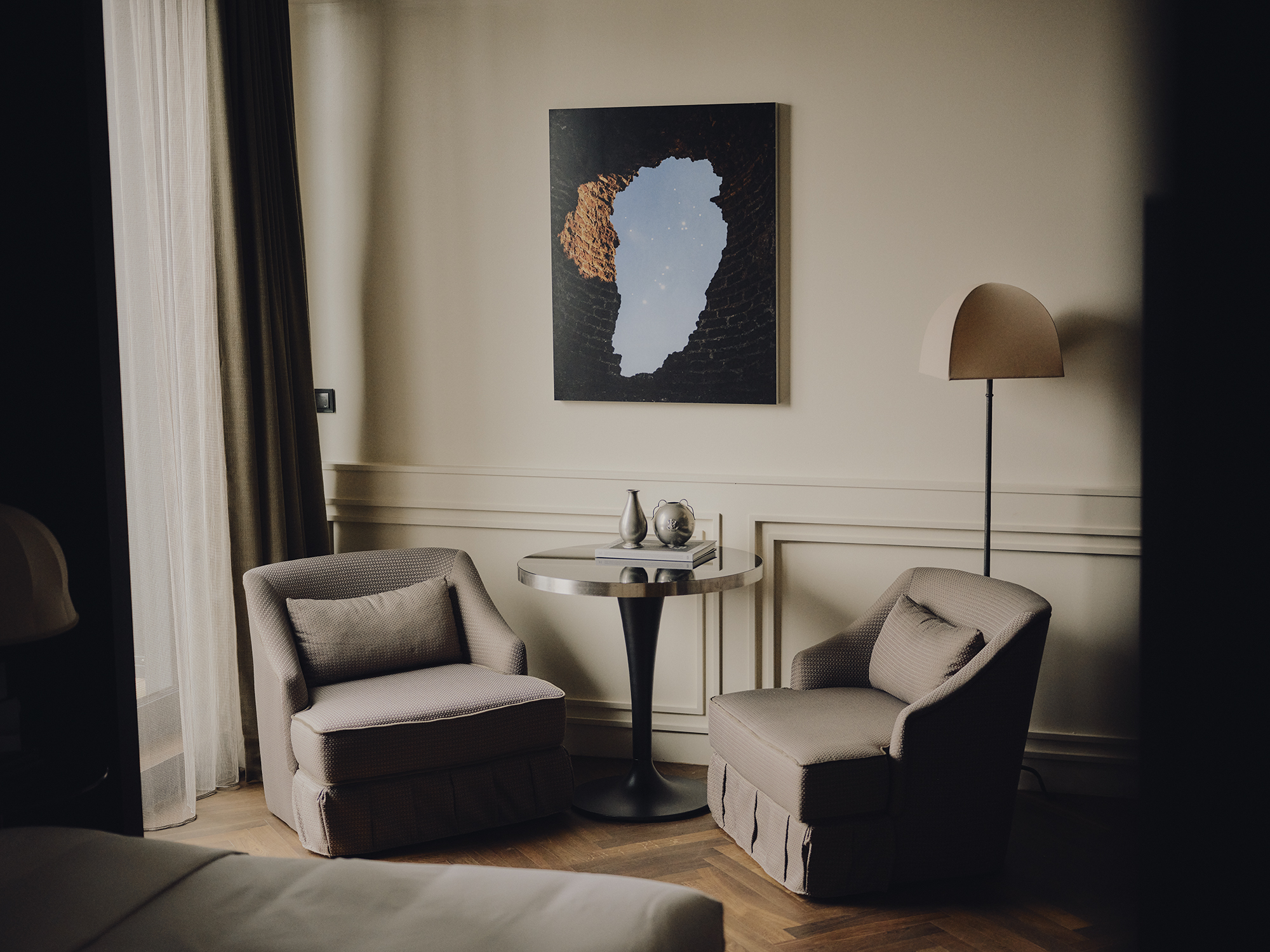 Big on space, style and character. This is our 73-sqm suite with a king-size bed, separate living room, marble bathroom, free-standing bathtub, walk-in rain shower, and separate half bathroom. Sleeps three.