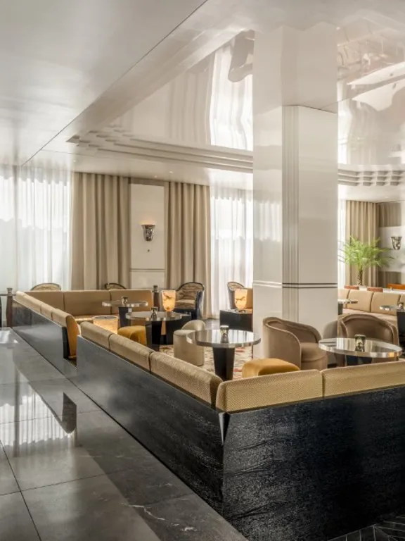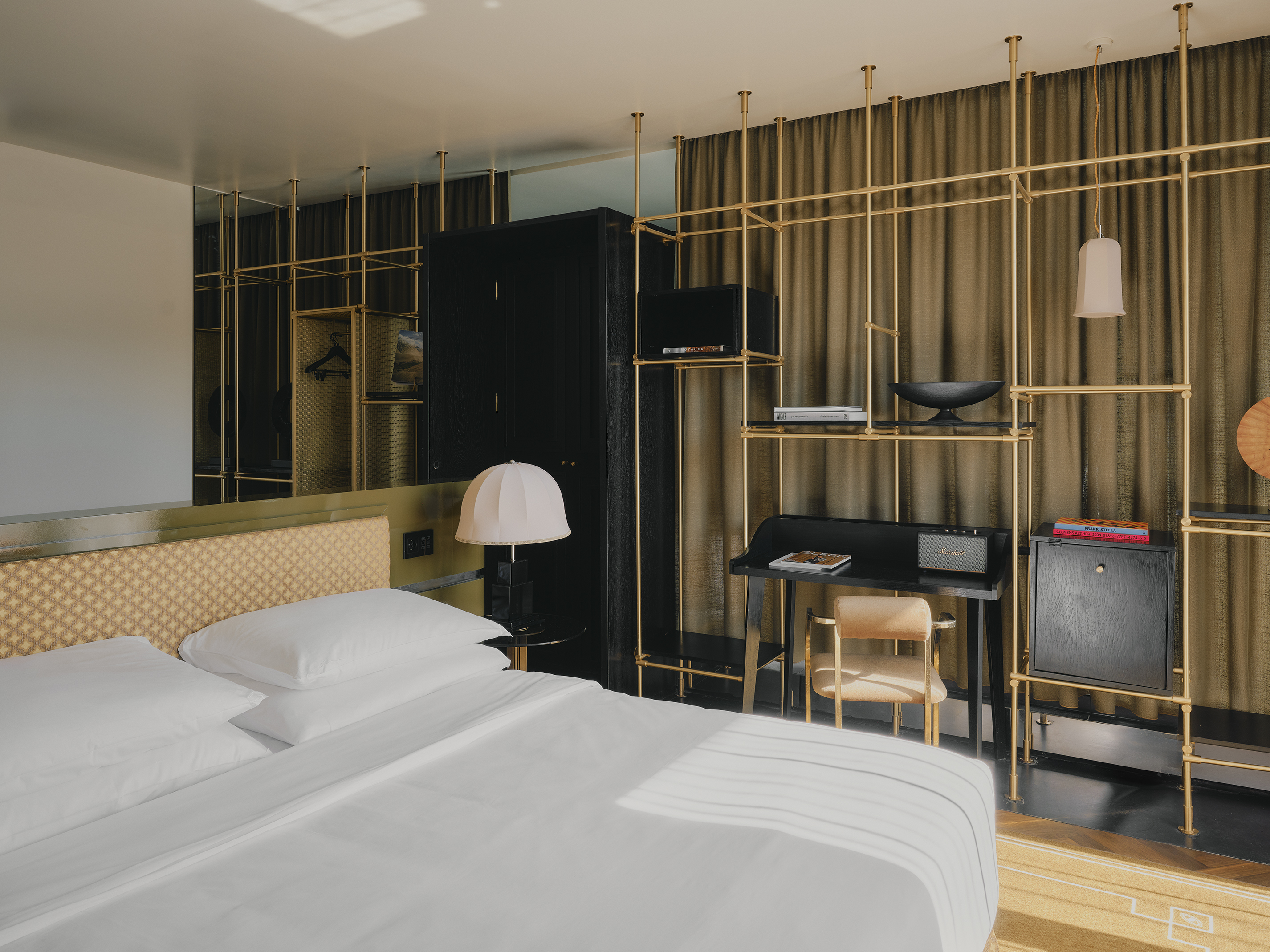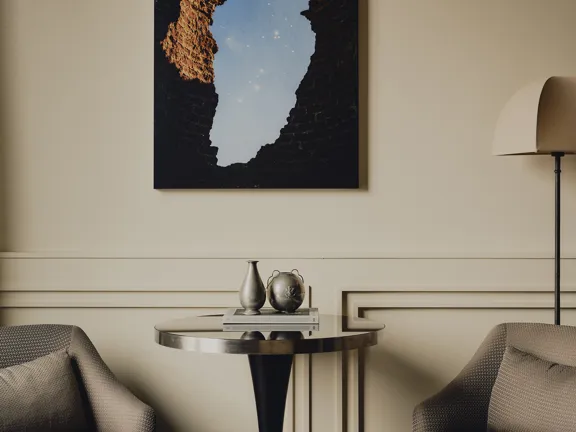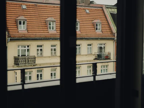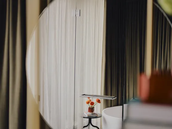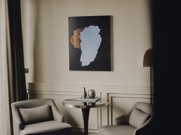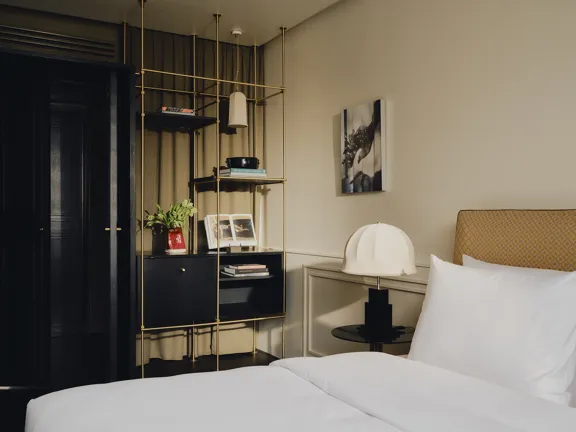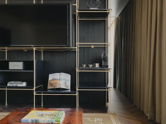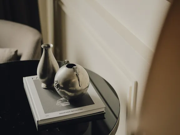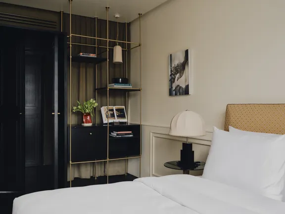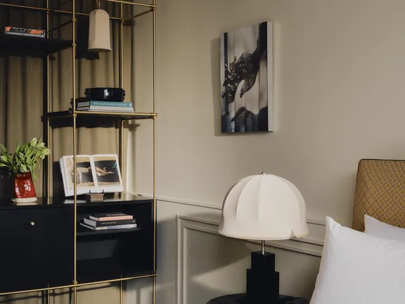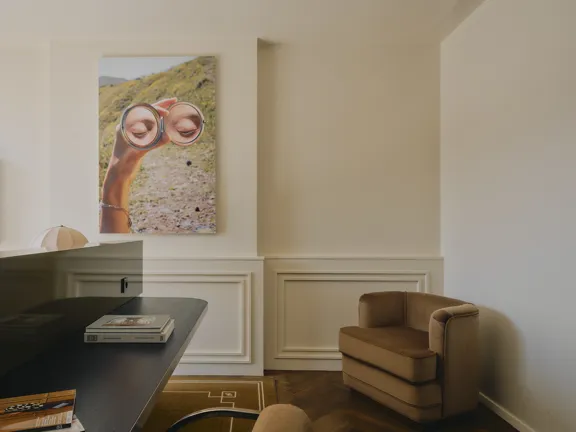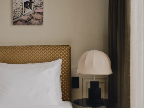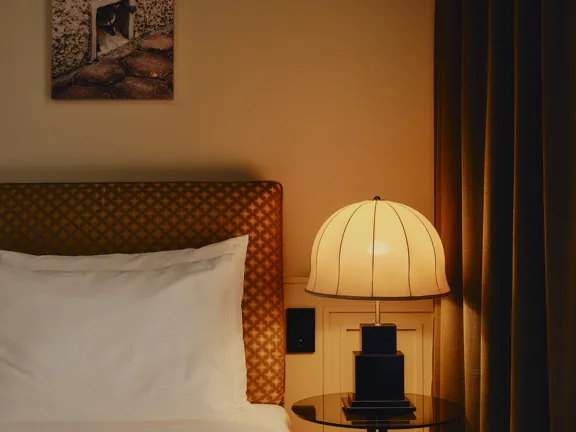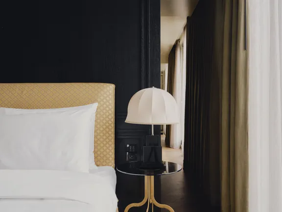 A suite to stretch out in. 57 sqm of charm, plus a walk-in closet, king-size bed, private bar, and 8 sqm private terrace overlooking Munich. Sleeps two.