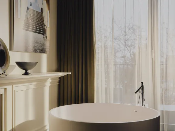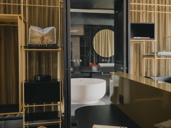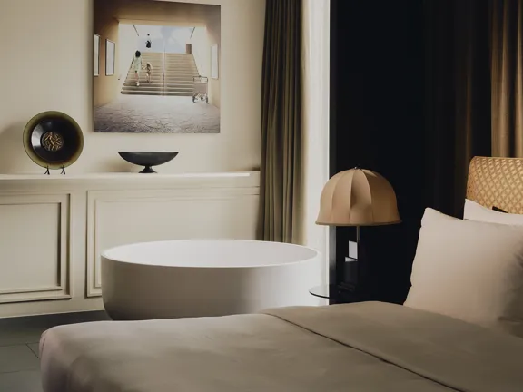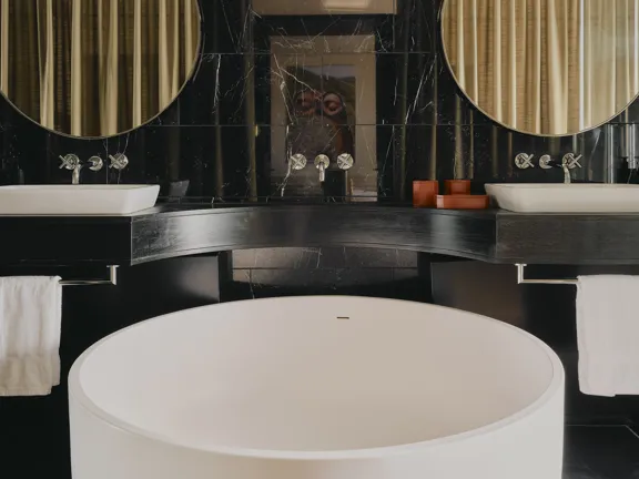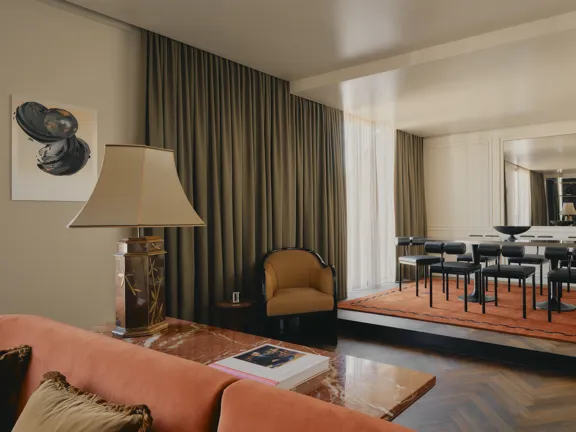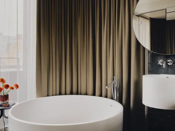 For those who like to host. A 95-sqm suite with a king-size bed, lounge, dining area, 30 sqm terrace, and a guest bathroom. Relax in the spacious bathroom's walk-in rain shower and free-standing bathtub. Sleeps two, or three with an extra bed.