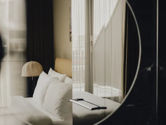 Enjoy sunrise or sundowners overlooking Munich's Westend. The Premium doesn't disappoint, with a private balcony, king-size bed, free-standing bathtub and walk-in rain shower. Sleeps two.